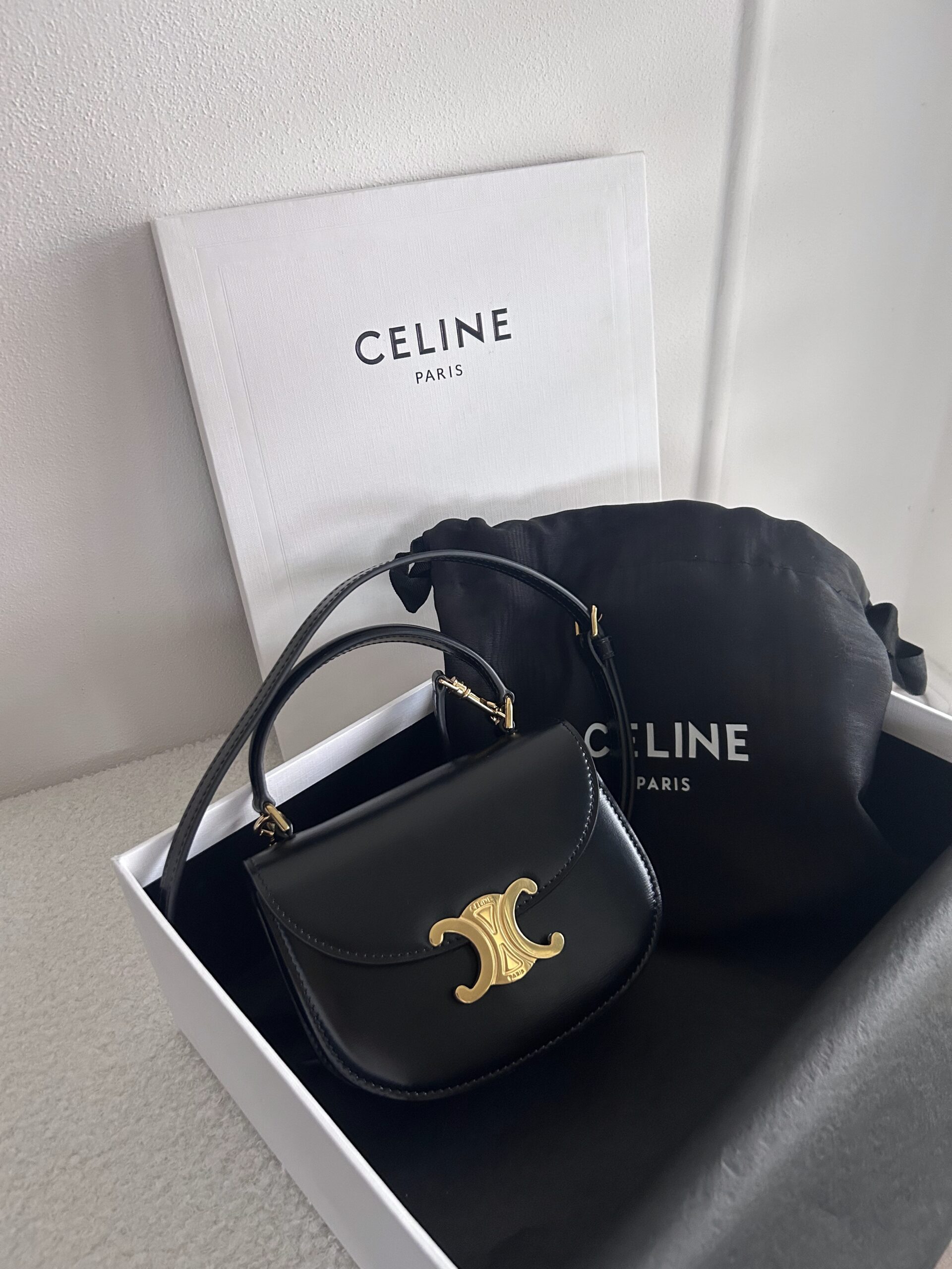 Ikonická kabelka Clea od Celine je důkazem, že i kompaktní doplněk může mít výraznou osobnost. Tento roztomilý model v černé calfskin variantě kombinuje vysokou eleganci s jemnými detaily..